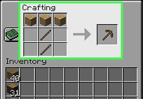 Make the necessary tools to collect sturdier resources. You'll need at least a wooden pickaxe to collect any of the following resources, though they're well-worth the trouble: Cobblestone Sandstone Granite Some resources, such as obsidian, require higher-level pickaxes (for example, obsidian requires a diamond pickaxe to mine). While tools like shovels and axes aren't required to gather dirt (or wood, or sand) and wood respectively, these tools drastically increase the speed with which you gather the pertinent materials.