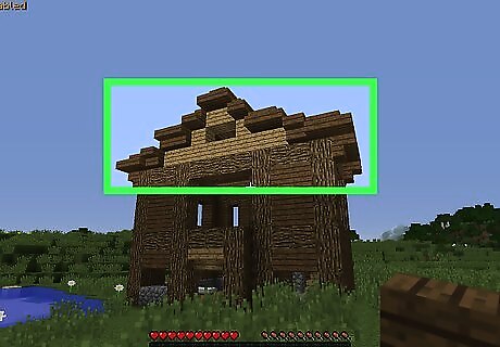 Dress up the structure. While your structure is technically complete at this point, you can add items to it to make it both safer and more attractive: Build stairs and add them to your structure to be able to move up or down without jumping. Create doors and add them to entrances to prevent mobs from wandering in. Make torches and add them to both the outside and inside walls of your structure to prevent mobs from spawning. Use glass to make windows.