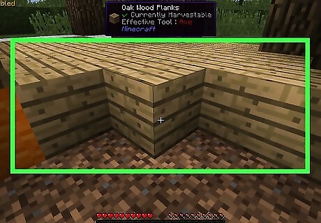 Add walls. Create a rectangle of blocks that surrounds the foundation, then build on top of that rectangle until it's at least four blocks tall.