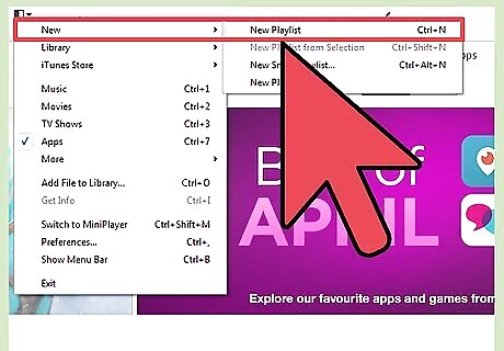 Click the "+" in the lower left corner of iTunes to create a new playlist. From the Playlist page, hit + and select "New Playlist." This will then bring you back to your music, and a gray bar will open up on the side of the screen. This is where you drag the podcasts or songs into the playlist to be burned. If you have the podcast already selected in iTunes, you can also press Shift+Control+N (Windows) or Shift+Command+N (Mac) to automatically make a playlist with all the selected (highlighted blue) songs/podcast.
