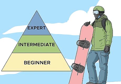 Determine your experience level. There are three basic skill levels of snowboarding: beginner, intermediate and expert. A pro might also be considered a fourth level in terms of experience. Many snowboards are made for specific experience levels and the description will usually tell you which level the board is made for. Beginner snowboarders are those who have never snowboarded previously or are still moving slowly down a run. An intermediate snowboarder is one who is more solid on their feet, can ride toe and heel edges, might be starting to ride switch and might be beginning to ride a little in the park or advance their riding in other ways. An expert snowboarder will have strong confidence while boarding, can adapt to elements and conditions and can ride the steepest terrain while maintaining control. A pro is someone who has been snowboarding so much that they are more comfortable on a snowboard than they are walking on their two feet. Factor in your progress when purchasing a snowboard so that you do not progress past that experience level too quickly.