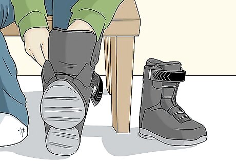 Pick out your boots. Boots are the most important aspect of your snowboard in terms of comfort. They are also designed for performance and can enhance your riding if you choose the correct ones. Boots vary according to their flex and are chosen according to your riding ability and style. Soft flex boots are the most flexible boots and are perfect for beginners and kids because they are easy and comfortable. Medium flex boots provide more power in turns and quicker reaction times so they are better for more experienced riders. Stiff flex boots are used in the halfpipe and by freeriders for carving fast and hard. They provide excellent turn initiation and extra power and protection for use in the halfpipe.