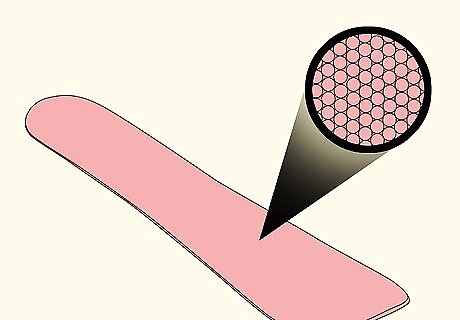 Examine the base of the snowboards. Snowboard bases are either extruded, meaning the polyethylene pellets have been melted down before being forced together under pressure, or sintered, meaning the polyethylene pellets are forced together under extremely high pressure without being melted first. The graphics can be applied to bases using screen-printing, sublimation or the die-cut method. Beginner, intermediate and freestyle boards will usually use extruded bases because they are cheaper and easier to repair in case of damage. Extruded bases can be waxed using rub-on wax or a hot wax every 8 times out on the mountain. Sintered bases have pores in between the pellets, meaning they can absorb more wax and are therefore much faster. They will need to have hot wax applied every 3-5 times out on the mountain. Sintered bases especially need to be waxed often to maintain their performance. Screen-printed graphics have been applied directly onto the base in layers from the bottom up to the core. This is usually used on extruded bases. Sublimation is when the graphic is printed onto paper and then uses heat and pressure to transfer the ink from the paper to the base. A second layer is then applied in the same way and then the base is attached to the board with epoxy. Die-cut is when the colors are cut out and inlaid next to each other. Because there is no ink added this makes for a lighter weight board and crisper graphics. Most boards will have a number assigned to the base indicating the number of pores per square inch. These can run from 500-8,000 with more pores meaning a faster board that needs to be waxed more often.