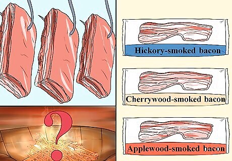 See what kind of wood is used during cooking. Bacon is grilled on a variety of different surfaces. The type of wood used to cook bacon can affect its taste. Hickory-smoked bacon generally tastes the most like classic bacon. If you're looking for classic breakfast food, try this type of bacon. Cherrywood-smoked bacon has a milder flavor. If you want only a slight bacon flavor, like in a soup, try cherrywood-smoked bacon. Applewood-smoked bacon has a subtle, fruity taste. It could make a great addition to a sweeter dish.
