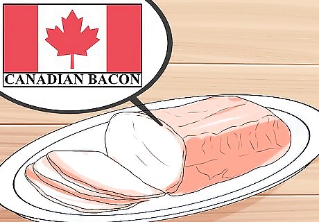 Use Canadian bacon. Canadian bacon is a fully cooked pork loin. It is more like ham than bacon. Typically, Canadian bacon is used on eggs benedict. If you're making eggs benedict, go for Canadian bacon.