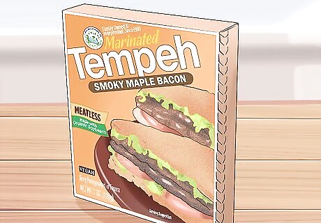 Try non-meat bacon. If you're vegetarian or catering to someone who is, there are many varieties of vegetarian bacon. You can stop by your local supermarket and browse the vegetarian section to find veggie bacon. Tempeh is a substance made of fermented soy. Tempeh bacon is soaked in spices to get a similar taste to bacon. This can be a great meat substitute in dishes.