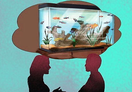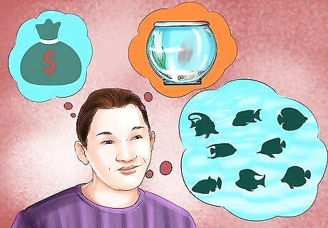 Consider your wishes—and limitations. Are you hoping for a tankful of goldfish or other color fish? Consider what your optimal tank looks like and if you can accommodate it. This can help guide you to get the right tank mates for your gold fish. Ask yourself some of the following questions when considering buying tank mates for your goldfish: How many fish do I want? Can my tank house this many fish? Can I afford to properly care for so many fish? How much time will I need to devote to my fish? What types of fish do I want? Are the types of fish I want compatible with goldfish?