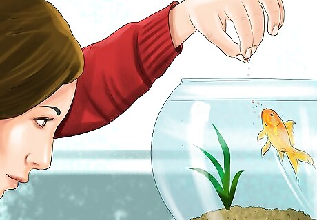 Observe fish closely. For the first couple of weeks, make sure to watch how your new tank mates and goldfish are doing. Check to see if you can detect any diseases or behavior issues between the fish. If there is a problem, consult your retailer to see how to deal with them or consider returning the new tank mates if you can for an alternative. Watch for symptoms of of physical disease such as parasites, white spots or velvety patches on the body, missing scales, incomplete fins, cloudy or bulging eyes, ulcers or other lesions, rapid breathing and shaking. Look for behavioral signs of stress or disease such scraping against the tank, erratic swimming, listlessness, gasping at the surface, or sulking in a corner.