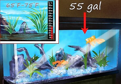 Avoid potential mismatches. Just as there are great tank mates for goldfish, there are also some that may cause problems. This includes fish smaller than goldfish and other species of goldfish. House goldfish of similar species together. Don’t keep narrow-bodied and fat-bodied goldfish, sometimes called “fancy goldfish,” in the same tank. The narrow-bodied goldfish will eat all of the food before their fat-bodied or fancy fellows. This can harm the fat-bodied or fancy goldfish. Remember that potential tank mates should also require water temperatures between 65 and 75. Likewise, fish sensitive to ammonia and other types of waste are also probably not compatible with goldfish, which produce a lot of waste. Look to find fish that can thrive in a pH balance of 7.0 to 8.0, which is also optimal for goldfish.