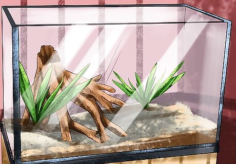 Get your goldfish ready for its new mate. Just as the new tank mates need to get used to their new surroundings, your goldfish will also need to get ready for a new tank mate. Taking steps to distract your goldfish and prevent aggression can prevent potential problems between the fish. Rearrange any decorations in the tank. This can distract the goldfish and remove any established territories. This can help the fish get along better because they will be on equal footing. Feed your goldfish before acclimating the new tank mates and setting them free. This can help reduce any aggression your goldfish may feel towards its new tank mates.
