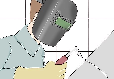 Use a welding shield to protect your eyes and face from burns and sparks. Welding shields contain a vulcanized fiber face shield with a filtered lens that protects your eyes. Choose the lens filter shade that’s suitable for the type of materials and processes you’re working with. Start with a shade that’s too dark and then try progressively lighter shades. Choose the shade that allows you to see the weld zone while staying within the minimum required shade. Don’t choose too light a shade; radiant energy and light can cause severe damage to your eyes if not filtered correctly. Refer to OSHA for shade requirements. For example, torch soldering requires filter lenses with a minimum protective shade of 2, whereas carbon arc welding calls for a protective shade of 14. For some processes like plasma arc cutting and gas tungsten arc welding, the shade requirement increases (i.e. the lens has to be darker) as the arc current and electrode size increase.