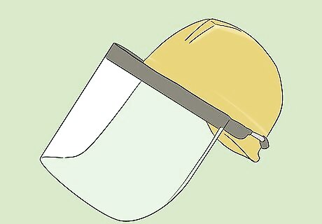 Choose a face shield to protect your eyes and face from dust, splashes, and sprays. A clear plastic face shield will cover the width of your face, from your eyebrows down to your chin. Select a face shield if you’ll be working with hazardous liquids or sources of dust. Choose a thickness that’s rated for the type of work you’ll be doing. Purchase compatible headgear to attach your face shield to, or pick a shield that’s compatible with the hardhat or headgear you’ll be wearing. For glare protection, opt for a polarized face shield. Try a face shield with a lift-front window if you’ll need to tilt it up and down regularly. Face shields aren’t typically rated for impact protection. Wear a pair of safety spectacles or goggles beneath your face shield if you need impact protection as well.