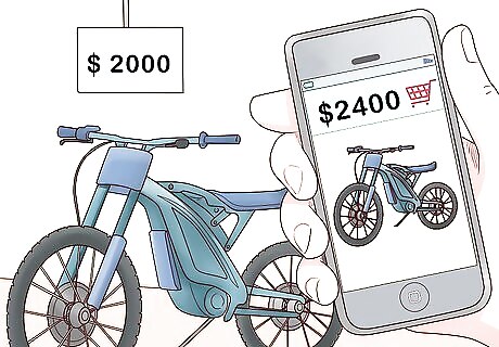 Compare prices and shop around for bikes before you make a purchase. Once you've identified the type and model of dirt bike you want, make sure to look around on different websites and in stores before you buy. There's no worse feeling than buying your dirt bike and then finding a much cheaper price for the same bike later. It can be cheaper to buy a dirt bike from a local store than buying online. If the bike you buy online is on the other side of the United States, it could cost you a lot more money to get the bike delivered.