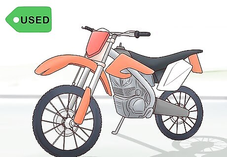 Buy a used dirt bike if you want to save money. There's nothing wrong with buying a used dirt bike for your first dirt bike. Used bikes are much cheaper than new bikes and can be bought for between $500 and $2000. It's better to buy a used dirt bike starting out because you might decide to give up the sport soon after starting. You don't want a brand new dirt bike that you spent a lot of money on collecting dust in your garage. Remember that if a used bike breaks, you have very little chance of a refund if you bought it on eBay or Craigslist. Spending less can often cost more in the future. If you find 2 of the exact same bike at 2 different prices online and the cheaper one is more beaten up, you should consider buying the more expensive bike. You could spend much more money fixing up the cheaper, battered, bike compared to the more expensive bike in good condition.