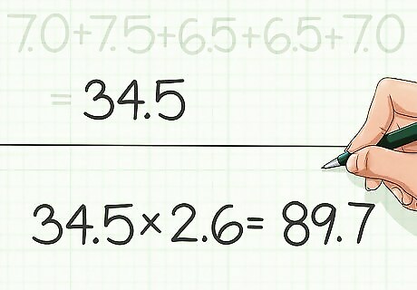 Add the rest together. Find the sum of the remaining scores. Example: 7.0 + 7.5 + 7.5 = 22.0