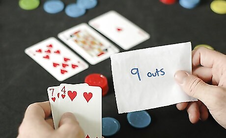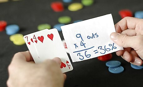 Divide the number of cards unseen by the number of "outs" that you have. "Outs" are the cards remaining in the deck that will allow you to make a winning hand.