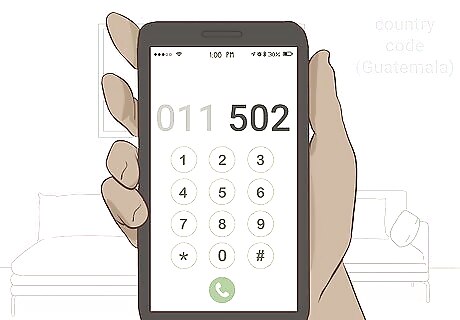 Dial "502." In addition to having an exit code, every country has a unique country code. This is the code you type after the exit code to indicate which country you're trying to reach. Guatemala's exit code is "502." Dial this after the exit code. For example, if you're calling from the United States, you would dial, "011-502."