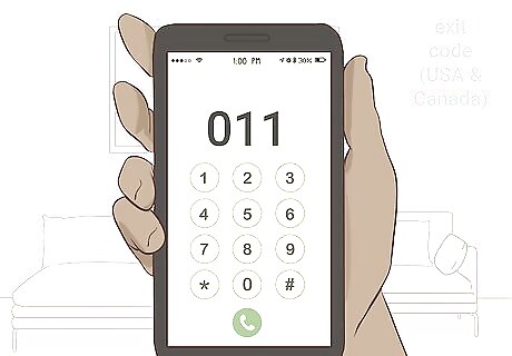Dial your country's exit code. Every country has what is called an exit code. It's the number you dial in order to direct a call outside the country. In the United States and Canada, the exit code is "011." If calling from the US or Canada, dial these numbers first. If you're not from the United States or Canada, you can find your country's exit code online. For example, the United Kingdom's exit code is "00."