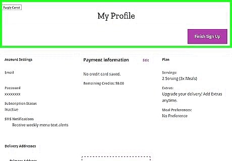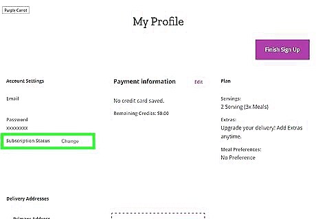 Click or tap No thanks, I'd like to cancel. You'll see this at the bottom of the pop-up window, under the purple button to "See Menus." Your account should be immediately canceled and you're logged out. You have until 11:59 PM EST on the Tuesday before shipping to cancel your subscription. If you cancel after the meals have shipped, you will be charged for that last delivery.