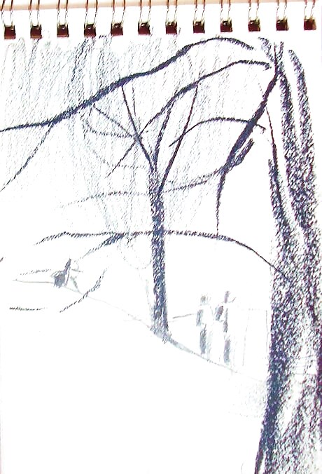 Decide what you want to draw. Find a place to settle yourself. Become a “fly on the wall,” perhaps sheltered from others so you will not be disturbed as you think and work. Engage all your senses and open yourself; let things come to you.