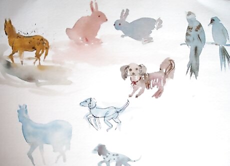 At home, pick what interests you. By working in a series, you might explore the facets of a single thing, for example your morning coffee accouterments and routine. You might want to celebrate a particular food or fruit. You can make a visual collection of random images. Open yourself go with it. When stumped begin with a single thing, for example, a clump of weeds or dog passing by. Then work out in all directions from that central figure until you come to the edge of your picture plane or paper.Grand dog blaze.jpg