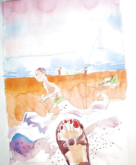Go back to your pencil sketches and begin with one of them. Paint within the lines or more abstractly. Paint only what is most important and leave the rest black and white lines. Paint softly or use harsh shapes and colors.