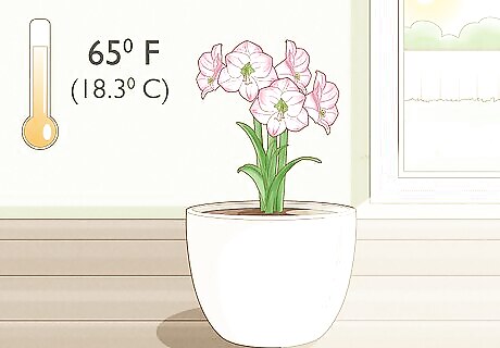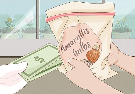Purchase Amaryllis bulbs in the color of your choice. You can find them in shades of red, pink or orange, as well as white. They may also be a combination of a few colors. The larger the bulb, the more flowers the amaryllis will have.