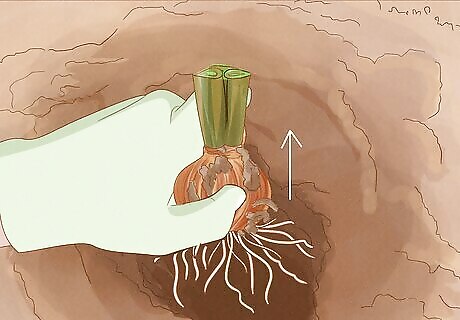 Remove the bulb and roots from the soil. Be gentle to avoid harming the bulb.