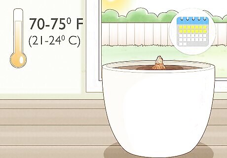 Place the pot in direct sunlight for the first few weeks of care. It grows best in 70 to 75 degrees Fahrenheit (21 to 24 degrees Celsius) weather.