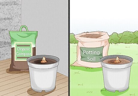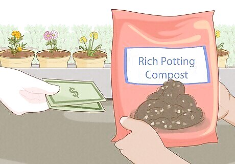 Buy rich potting compost at a local garden store. You can buy pre-made mixes that will work well for this type of flower. Only garden soil will not work, because it will not drain adequately.