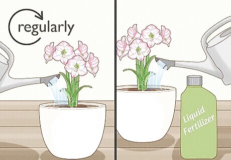 Water the amaryllis flower regularly, as you would most house plants. Add liquid houseplant fertilizer at regular intervals.