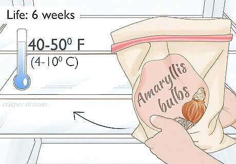 Store the bulbs in a cool, dry and well-ventilated place until they are ready to be planted. Their ideal storage temperature is between 40 and 50 degrees Fahrenheit (4 and 10 degrees Celsius). Use your refrigerator’s crisper drawer to store your bulbs for a minimum of 6 weeks. However, you should not store the bulbs next to fruit, like apples, or they can sterilize.