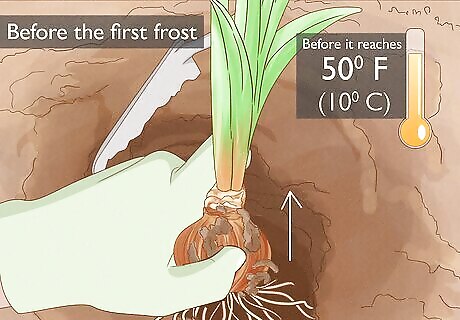 Make sure you remove and store the bulbs before the first frost, and before temperatures reach 50 degrees Fahrenheit (10 degrees Celsius).