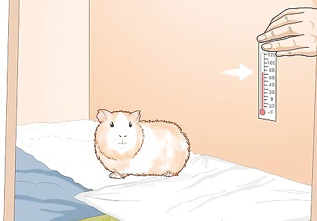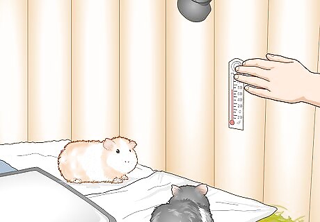 Add a thermometer to the inside of the hutch to control the temperature. Guinea pigs prefer a temperature between 65 °F (18 °C) and 75 °F (24 °C). Anything below or above this will cause your guinea pigs discomfort.