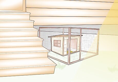 Re-enforce the hutch to keep predators out. Install wiring around the cage and secure the door and fencing. Alternatively, keep the hutch off the ground so that foxes cannot dig underneath. To prevent animals from digging a hole into the hutch, attach a mesh frame and bury it underneath.