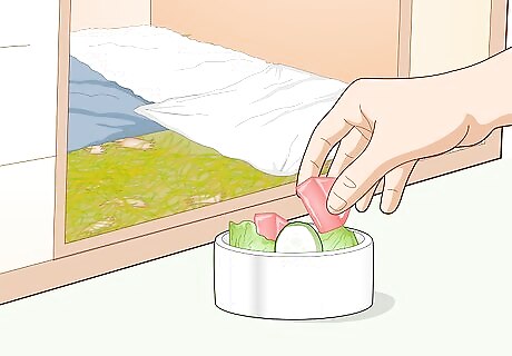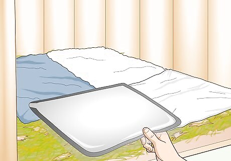 Place a pet-safe heating pad inside their home. These heating pads can be heated up in a microwave and stay warm up to one or two hours. Ensure the heating pad isn't too hot when it's placed inside the cage. Additionally, a hot water bottle can be filled with boiling water and placed inside the hutch.