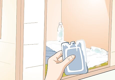 Place frozen water bottles and ice packs around their cage. When hot, guinea pigs like to lie in the grass or around the hutch to stay cool. Place a frozen water bottle or ice pack in their cage to encourage them to lie next to them.