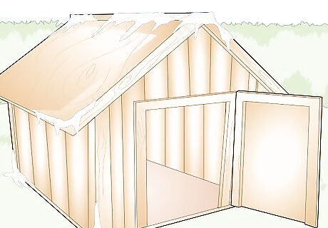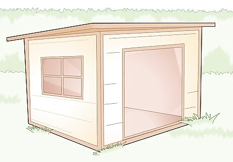 House your guinea pigs in a garden shed over the winter season. Winter is the perfect time to utilise your shed to offer a warm and dry place for your cavies to stay when it's not possible to bring them indoors. Ensure that your shed is free of drafts, and well insulated to keep your guinea pigs warm. Block drafts from the door using a rolled up towel or draft blocker. A garage can be used instead, providing that there is a window and it isn't used to store your car, as exhaust fumes are extremely dangerous.