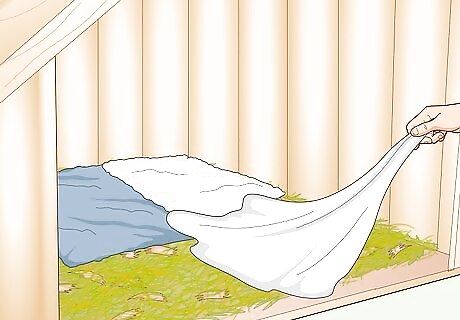 Add towels, blankets and fleece to the hutch. Guinea pigs like to nest when it gets cold. Something to snuggle up to will help your guinea pigs stay warm, especially during the colder nights. Blankets will need to be cleaned daily, as your guinea pigs will urinate on them frequently. Fleece snuggle beds can be purchase from most pet stores, or online.