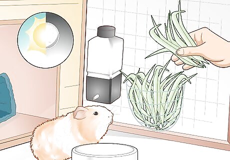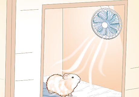 Install a fan inside their hutch. If you have a large enough hutch or coop, you can install a fan to the roof. Ensure electrical cords are safe to be used, and out of reach of your guinea pigs. Have the fan on a low setting and do not point it directly at your guinea pigs.