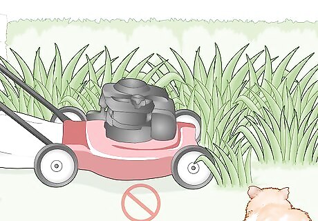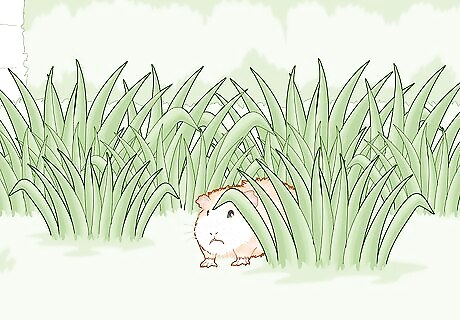 Avoid treating or mowing your grass. Guinea pig's love to eat fresh grass and hay as a primary part of their diet. If you have over-grown grass on your lawn, do not cut it! Your guinea pig's hutch can be moved on the surface. Treated grass is poisonous, so ensure no pesticides have been used.