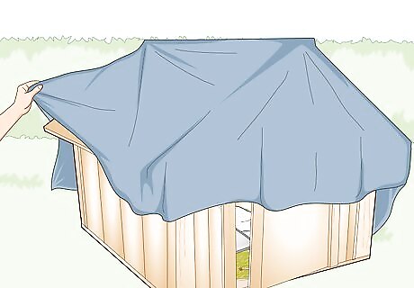 Cover the hutch with tarpaulin. A water proof cover will shelter your guinea pigs from the snow, rain and wind. Cover the hutch during bad weather, and take it off to allow ventilation when the weather has calmed down.