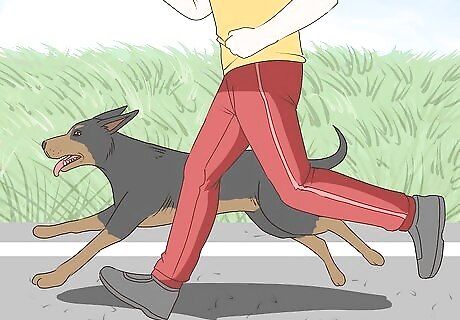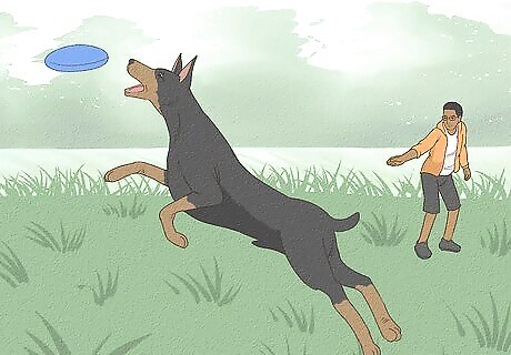 Make a significant time commitment. You should be prepared to devote at least 2 hours a day to exercising your Doberman, an hour in the morning and again in the evening. Their working origins and athleticism mean they have a high requirement for exercise.