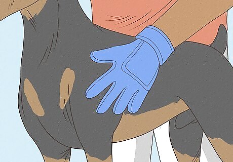 Get your dog dewormed and treated for parasites. Dobermans are likely to spend a lot of time outdoors, so deworming and parasite treatment is essential. Deworming medications come in tablets, oral liquids, oral granules, and spot on treatments. Each product is slightly different, so discuss with your vet which one is best for your pet. You should give your dog medication for roundworms (monthly) and a quarterly broad-spectrum dewormer, which stops whipworms and tapeworms. Treatment against heartworm is also advisable, either as a six-monthly injection, or a monthly spot-on treatment at home. Your dog also should be treated for fleas and ticks. Prevention is better than cure, so this involves using a product effective against fleas and ticks, such as fipronil (Frontline or Effipro) or the Seresto collar. Also, you should check your dog every day for ticks and remove them with a tick hook.