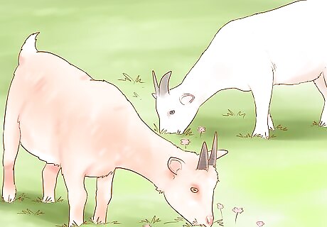 Try alfalfa hay. If you don't have a sufficient pasture for your goat or goats, you can feed them alfalfa hay in place of grazing. Each goat will need about a pound or 2 (0.5-0.9 kg) of feed per day. However, if they are also getting grains, they will need less.