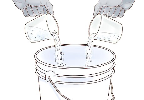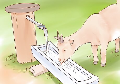 Provide a plentiful supply of water. Like all animals, goats need water to live. However, water is especially important to goats, as they are ruminants, meaning it takes more water for them to process their food than other animals. Always ensure they have access to clean, fresh water on a regular basis. Make sure to clean out the container you use fairly regularly and to change the water often.