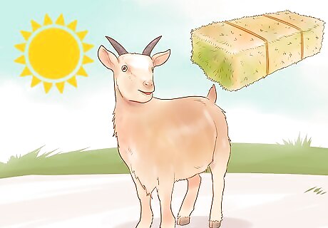Include vitamin D. Just like in humans, vitamin D helps goats absorb calcium, which maintains bone health. If your goats are outside most of the time, they will absorb vitamin D from the sun. However, if they don't get much sunlight, feed them either sun-cured hay (not heat-cured) or irradiated yeast.