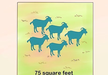 Consider the size of your herd. The size of your shelter is determined by the size of your herd. In general, you need to provide 15 to 20 square feet for each goat you have. So if you only have one goat, your shelter should be 15 to 20 square feet (1.4-1.9 sq. m). In practice, that's a 3-by-5-foot (0.9-by-1.5 m) shelter or a 4-by-5-foot (1.2-by-1.5 m) shelter. If you have 5 goats, you'll need 75 square feet (7 sq. m) to 100 square feet (9.3 sq. m), which translates to approximately an 8-by-9-foot (2.4-by-2.7 m) shelter or a 10-by-10-foot (3-by-3 m) shelter. In fact, you can use a large dog house for a pygmy goat if you are keeping it in your backyard.