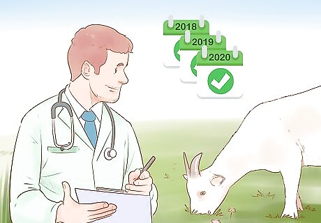 Schedule a yearly checkup. To keep your goat in good health, it's best to schedule a yearly checkup. That way, you can ensure your goat has the proper vaccinations, and you know your goat is in good health.