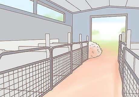 Create stalls. If you have multiple animals, create multiple stalls so each goat has his or her own space. The ideal floor for goats is gravel with clay on top of it. It's easy to clean out, and you can apply another layer every couple of years. Hay is sufficient for bedding, and goats generally won't eat what's on the floor. Also, you'll need troughs of some sort to feed the goats in.